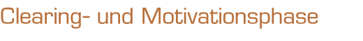 Im Unterschied zu den Gruppenphasen ist in der Clearing- und Motivationsphase eine Aufnahme stets möglich. Die Bewerber werden einmal im Monat in einem dreistündigen Seminar mit den Trainingsinhalten vertraut gemacht. Im zweiten Teil des Abends werden gezielt Problematiken besprochen und erörtert.